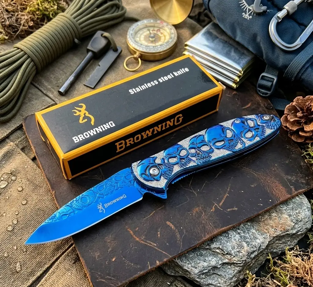 Knivox Browning 2955BL Mavi Kuru Kafa Desenli Kamp Çakısı
