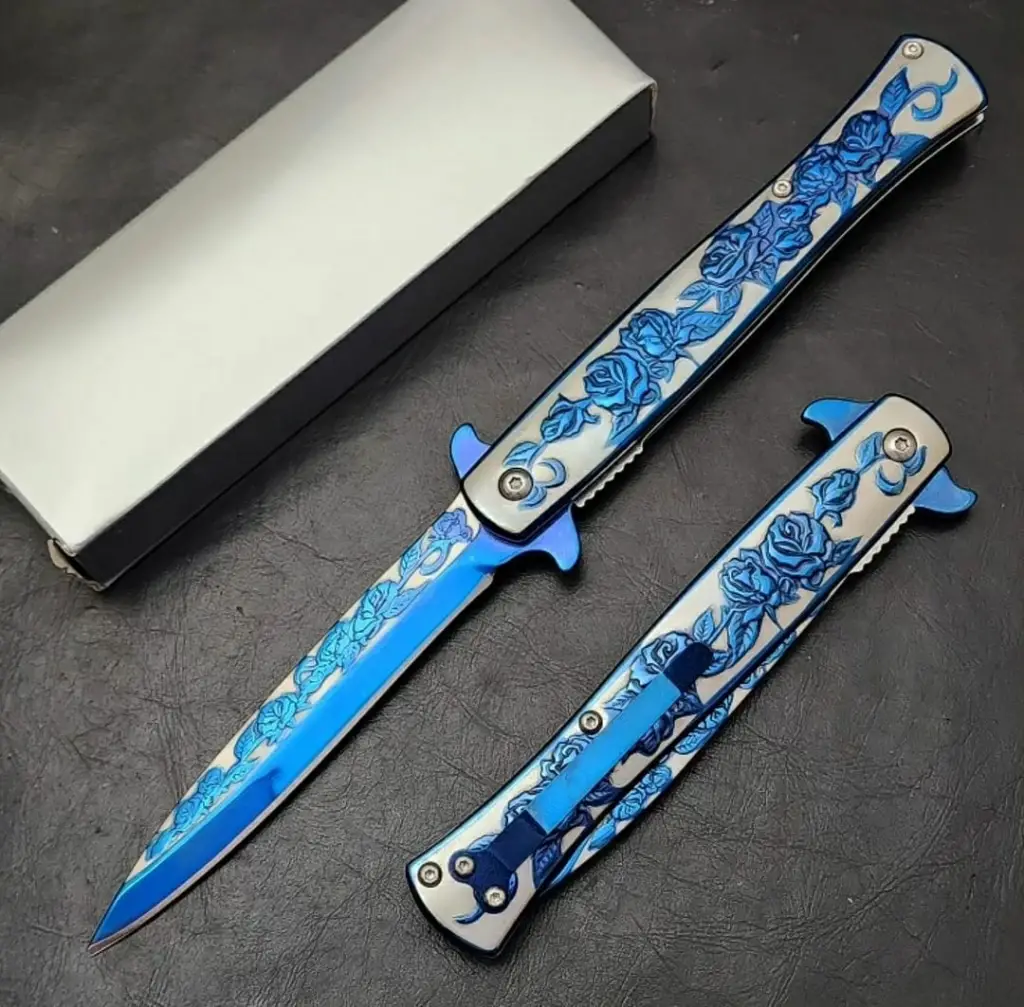 Mavi Gül İşlemeli Kamp Çakısı